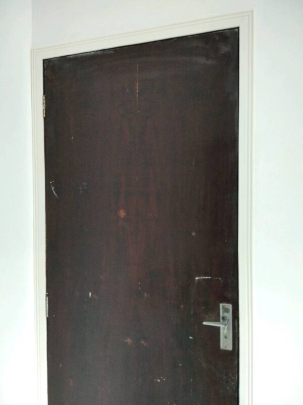 - Remova cuidadosamente a proteção da fita dupla face. Alinhe o rodapé na posição desejada na parede e pressione firmemente. Para uma fixação mais eficiente, utilize os punhos ou um martelinho de borracha para bater em toda a extensão da peça, garantindo assim que o rodapé esteja completamente aderido à superfície.