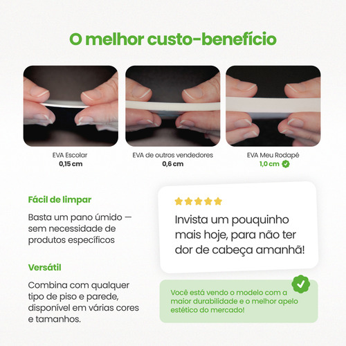 Alta Durabilidade: Lavável, resistente à água e imune a cupins.